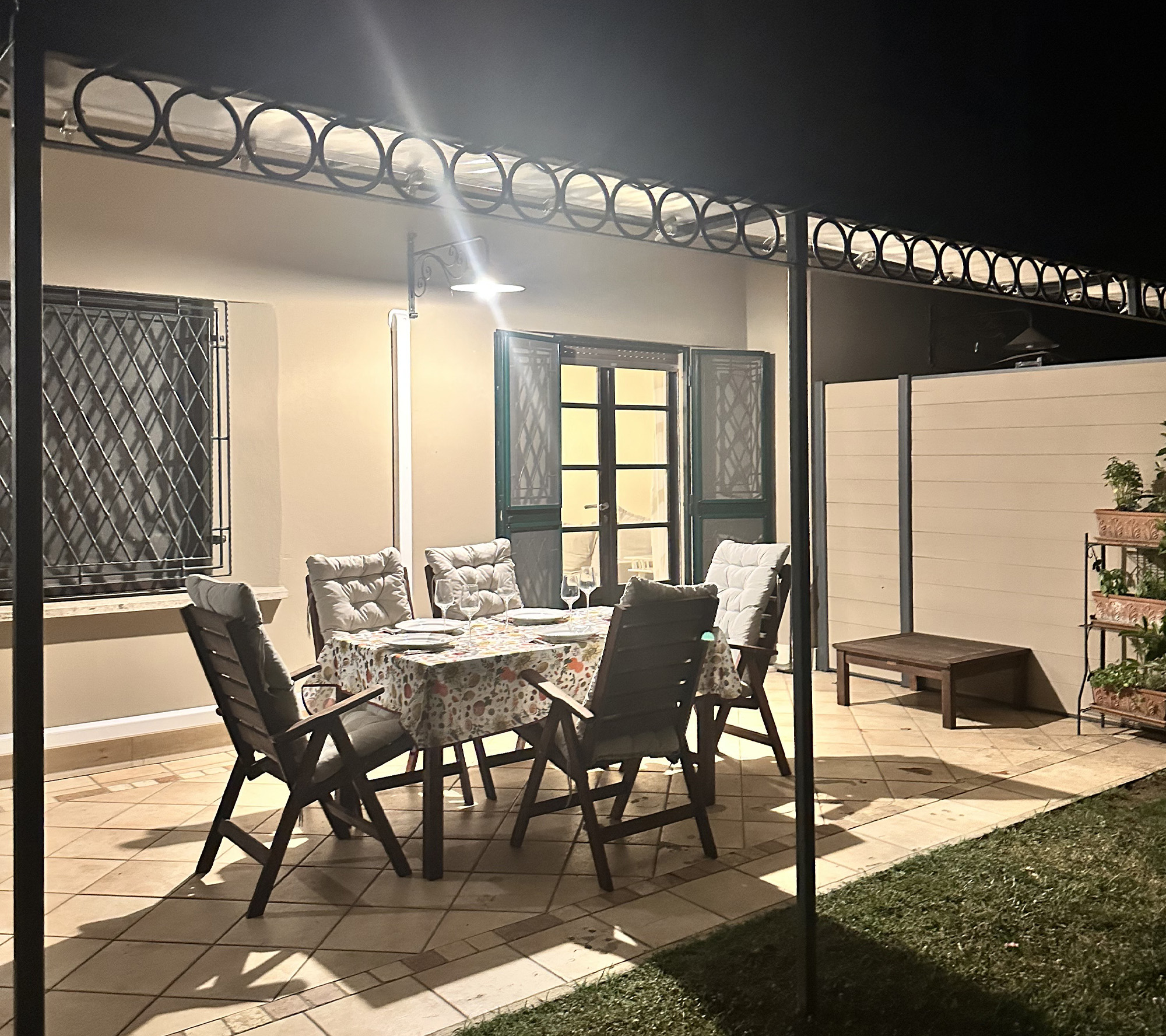 Un appartamento di circa 70 mq. Indipendente. 3 locali arredati con cura ed eleganza, 2 Camere da letto per max 4 ospiti, un soggiorno con divano e tavolo da pranzo, Mobile libreria con TV, cucina completamente arredata, bagno con doccia, veranda con tavolo e sedie, Bbq, giardino, privacy totale.